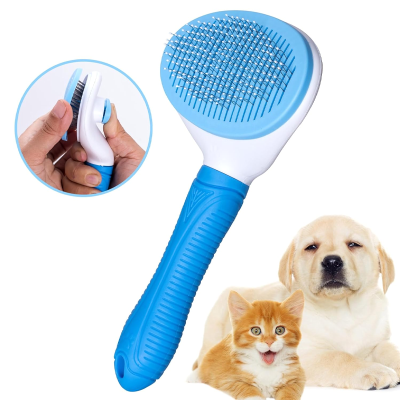 Suitable for cats and dogs, this brush removes loose hair, prevents tangles, and gently massages the skin, helping pets maintain clean fur while also fostering a closer bond between pet and owner. The handle is 8 inches long and the brush head is 4.3 inches, featuring an ergonomic, non-slip design for easy grip.